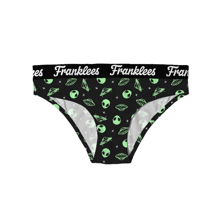 A flattering fit, it’s out of this world The Aliens Bikini Brief is a curve loving cut - soft, sweet and ever so classic. Comfortable and quality Cotton blend midrise Aliens Bikini Brief underwear featuring our signature 30mm logo trim. The Bikini Brief is the Galaxy’s bestselling basic Women's underwear style. Casual and confident! Franklees Aliens Print Bikini Brief matches perfectly with our range of other Alien print styles. So, get sharing and get matching.