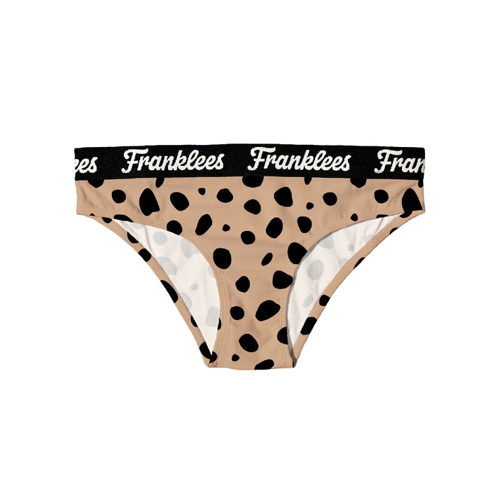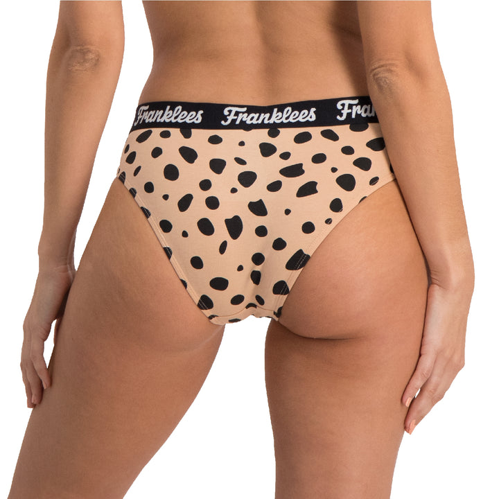 A flattering fit, oh yes indeed, a 101 ways of flattering fit! The Bikini Brief is a curve loving cut - soft, sweet and ever so classic. But Franklees is here to shake it up! Comfortable and quality Cotton blend mid rise bikini brief underwear featuring our signature logo trim. The bikini brief is a best selling basic Women's underwear style. Casual and confident! Franklees bikini brief matches perfectly with our range of women’s Dalmatians crop top bralettes, open back bralettes and triangle bralettes. So many ways to match.